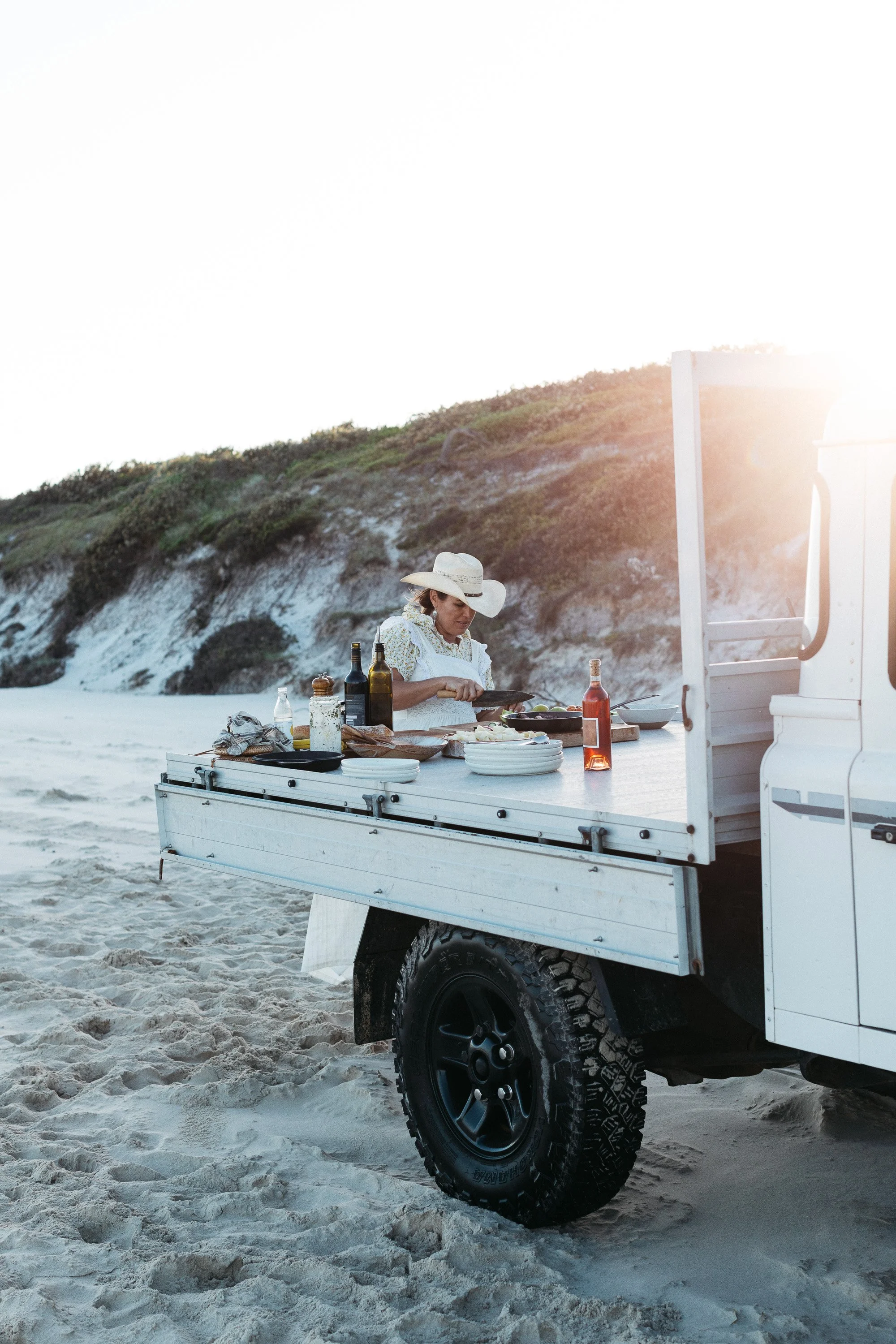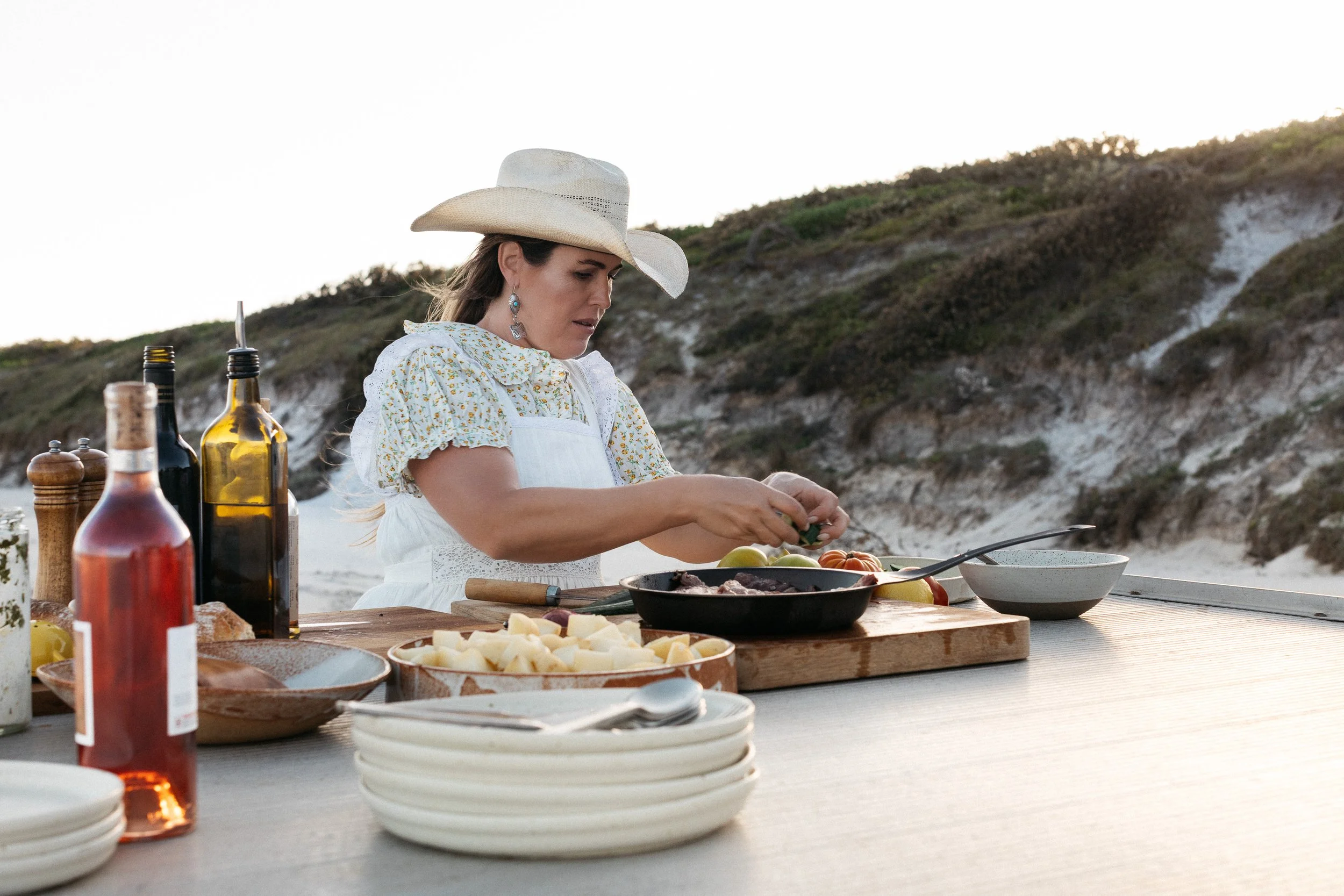 Once cooked, add potatoes to the grill to smoke with the tomahawk, or for a cheat, add liquid smoke to the dressing.